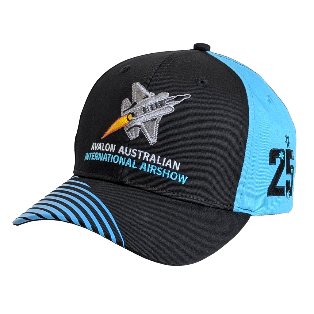 The 2025 Avalon Australian International Airshow Panel Cap features the official logo's of this exhilarating event.